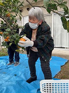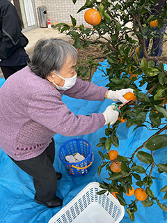 施設敷地内にあるみかんの木。皆様と収穫を行いました。