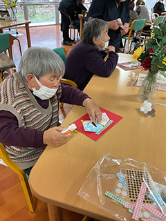 新年初めのご利用者様と「千の風神社」のお参りを行いました。皆様願いを込めて手を合わせていました。お参りの後はおみくじを引き、おやつはお汁粉を提供しました。